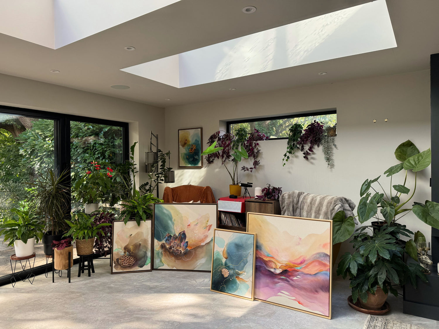 I love spending time outdoors - exploring countryside trails, having picnics and BBQs (no matter the weather), watching sunsets and noticing colours and patterns that always seem to find their way back into my paintings.